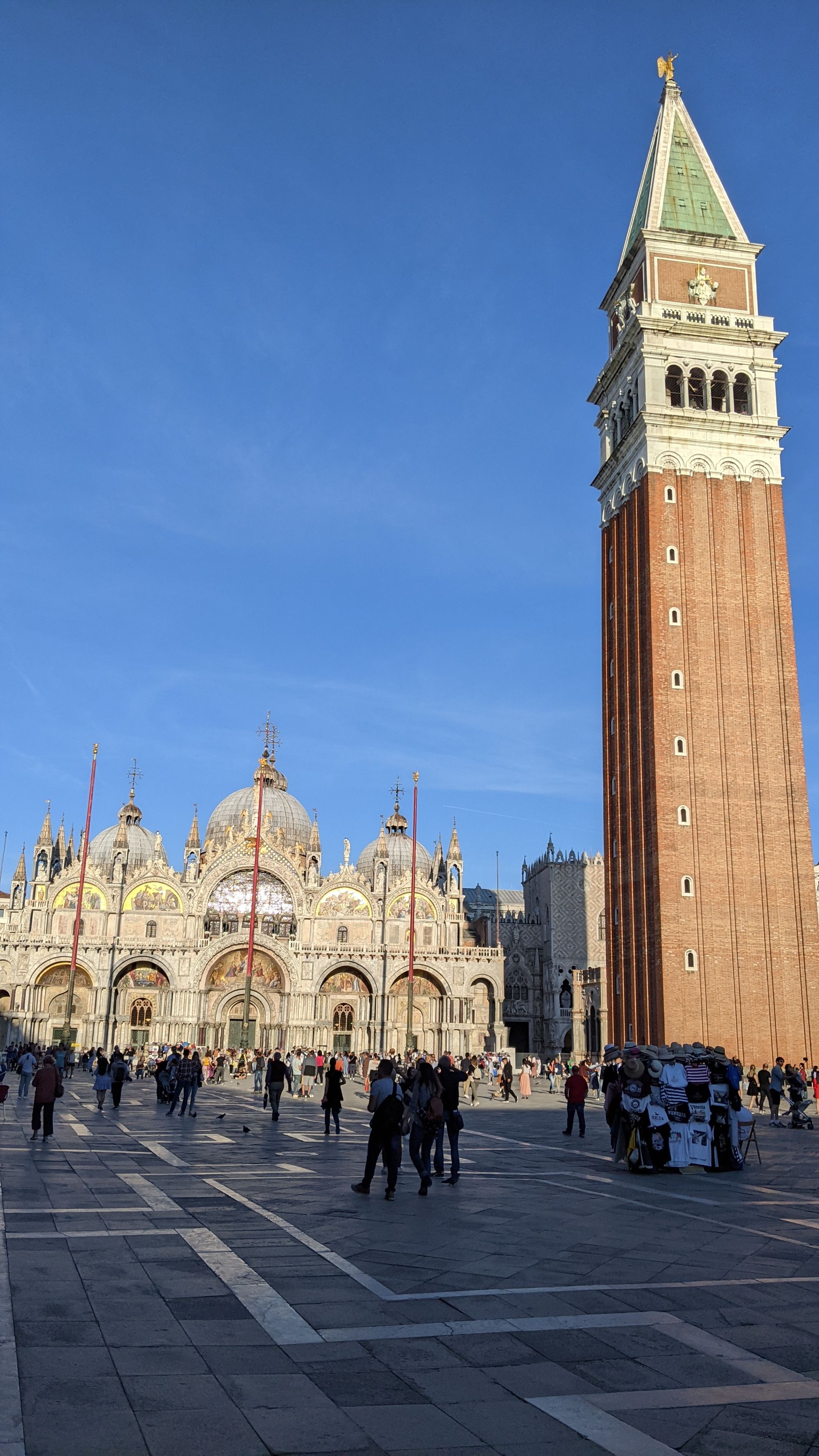 En esta plaza se encuentra la basílica de San Marco, el campanario de San Marco, el palacio del Doge y unas cafeterías de lo más caras que he visto en mi vida (café expresso a 7-8 euros). Nosotros encontramos la basílica en obras 😢. Es una de las zonas mas famosas de Venecia.